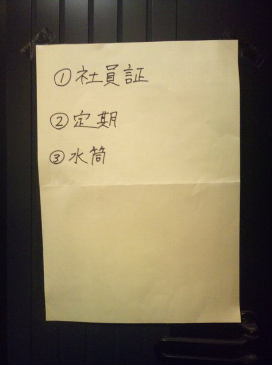 毎朝、玄関の張り紙をチェックしてから家を出ます。